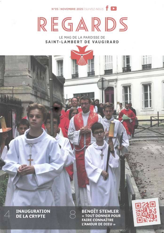 LE NOUVEAU ‟REGARDS″ est arrivé. Le magazine de la Paroisse Saint-Lambert de Vaugirard revient sur les évènements passés depuis la rentrée et vous informe sur tous ceux à venir. : témoignages, articles, photos, agenda…, vous saurez tout ! Il est disponible à l’église et à la maison paroissiale.